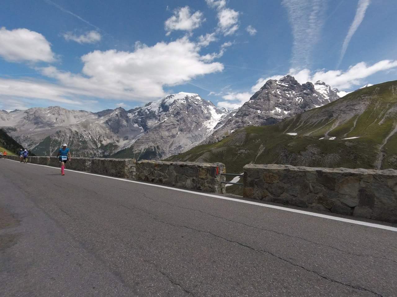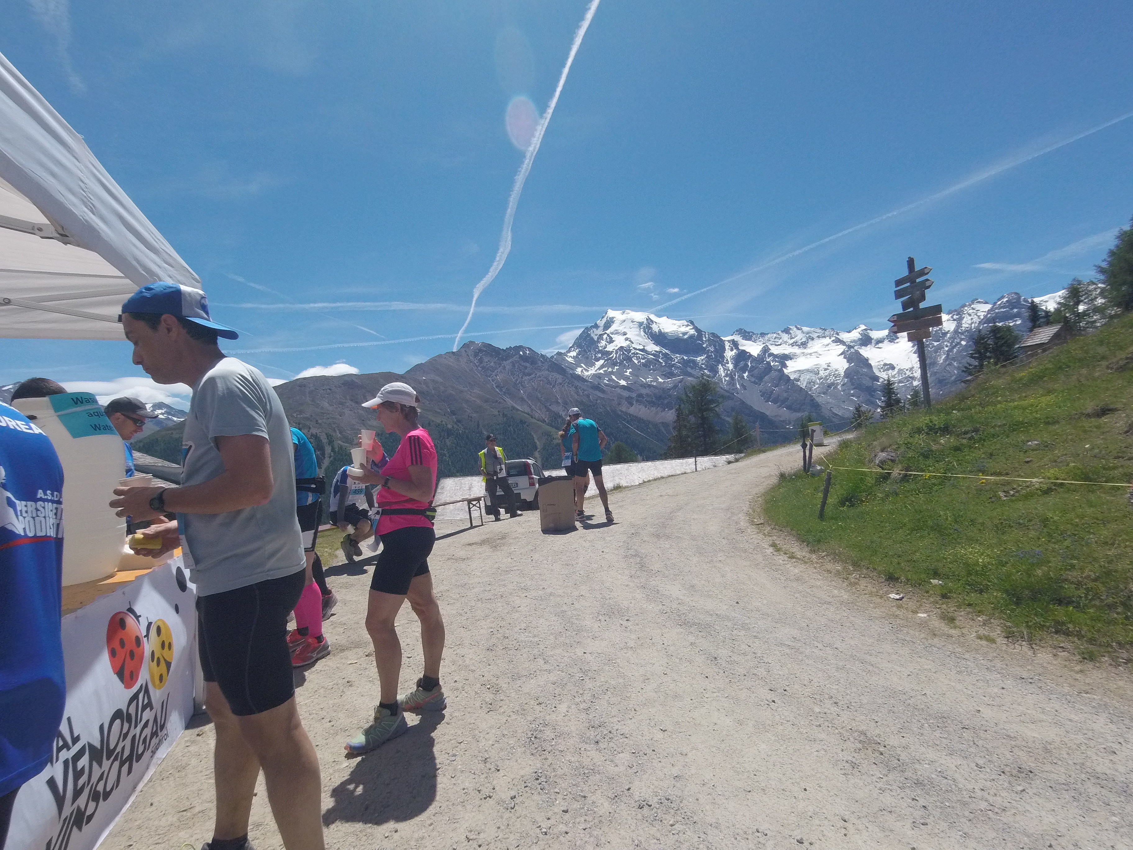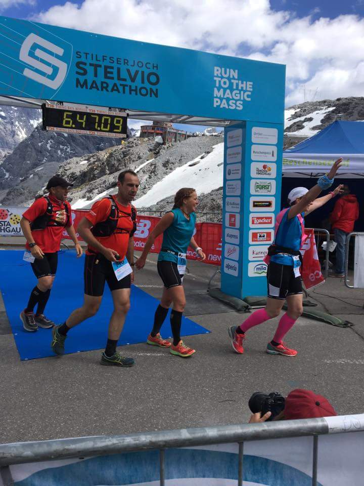 Bei Kaiserwetter fand am 17.06. in Prad am Stilfserjoch der erste Stelvio Marathon statt. Die Strecke führte nach dem Start zuerst 16km flach durch das Etschtal, um dann in weiteren 16km über Wanderwege und alpine Pfade von 900m auf 2400m aufzusteigen. Nach einem kurzen Zwischenabstieg mündete die Strecke auf die legendäre Stilfserjoch Passstraße, wo nach 25 weiteren Kehren und insgesamt 42,195 km das Ziel auf der Passhöhe in 2757m Höhe wartete.