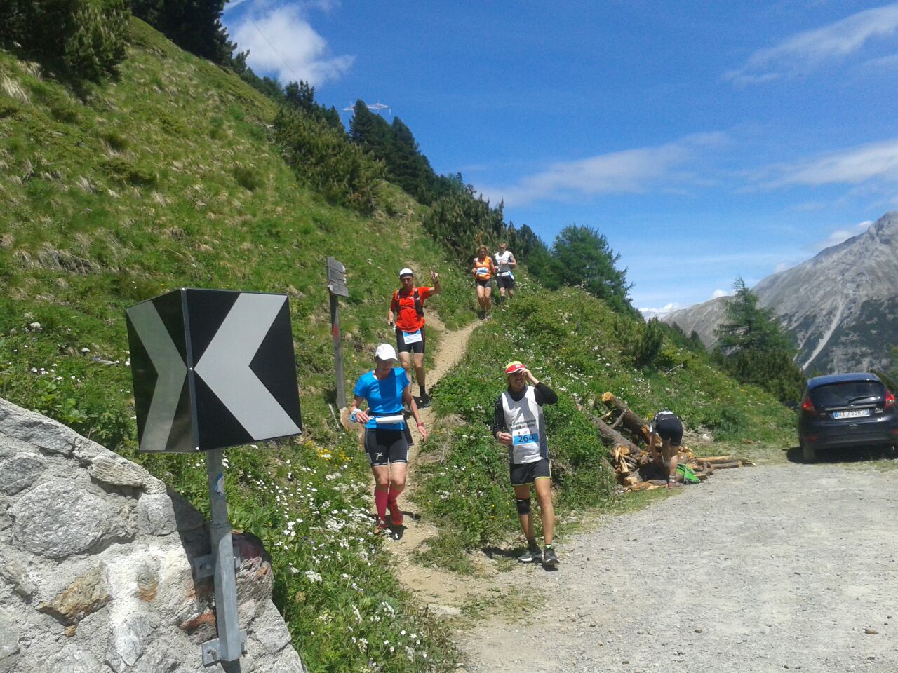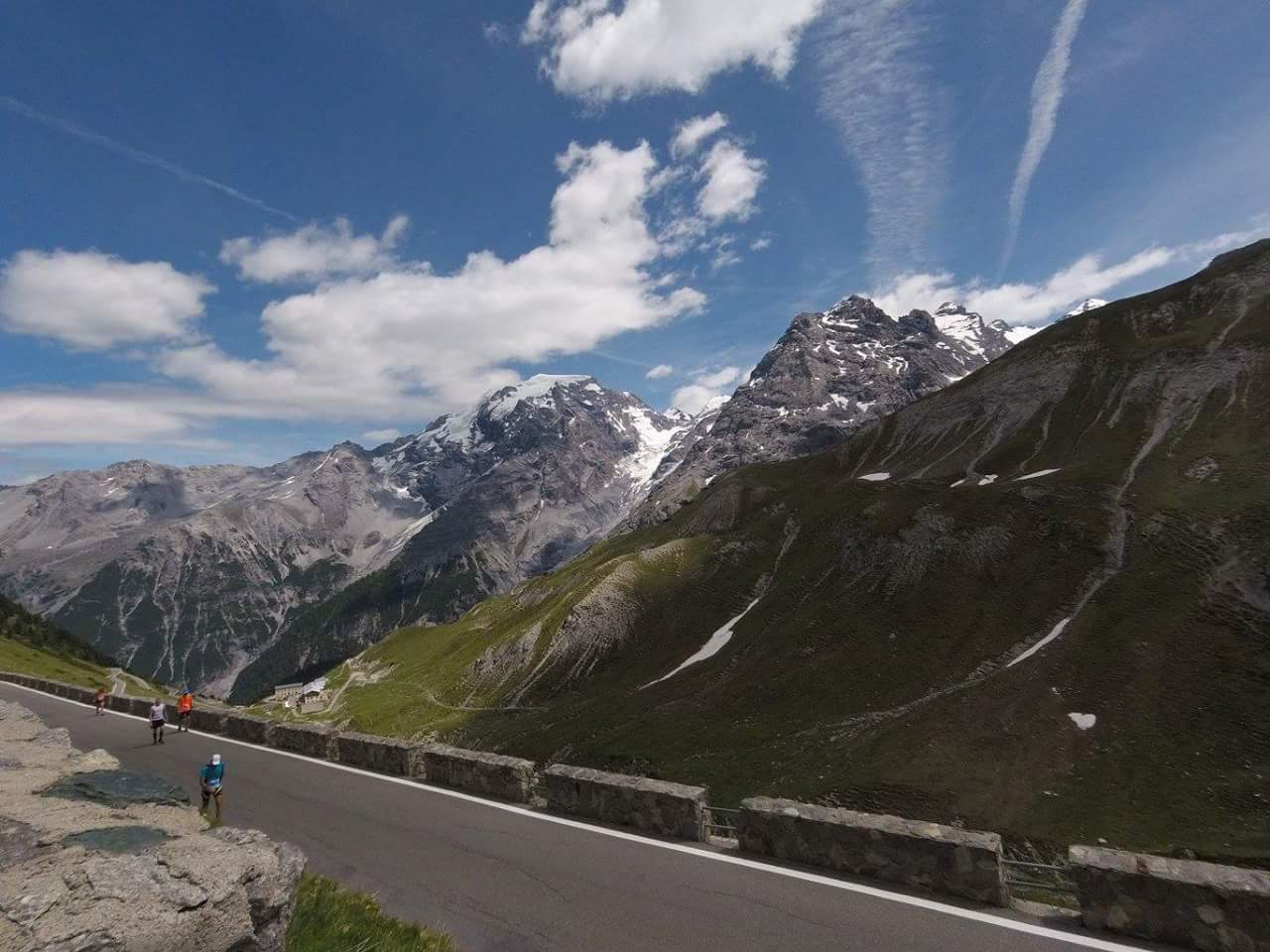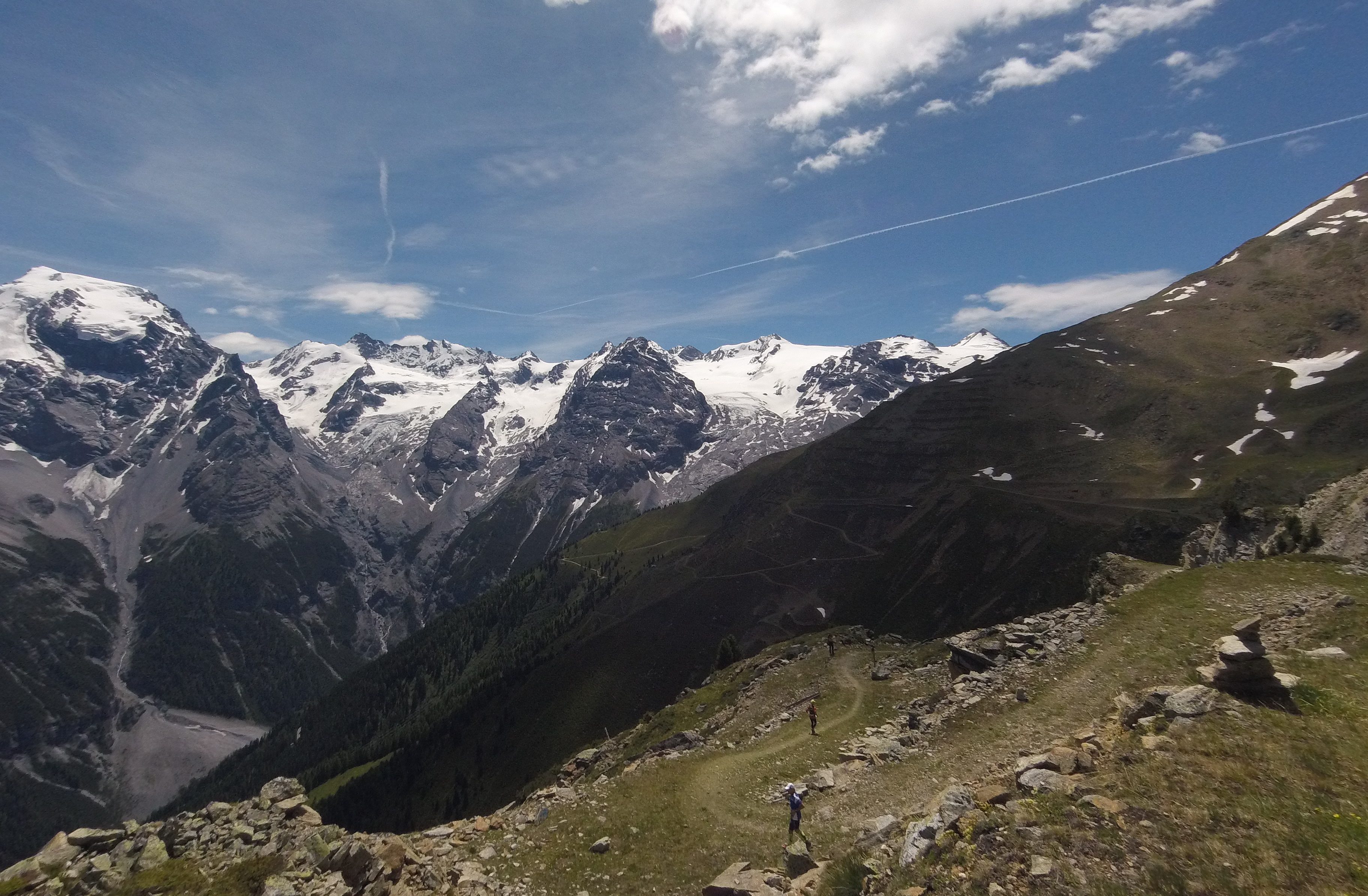 Bei Kaiserwetter fand am 17.06. in Prad am Stilfserjoch der erste Stelvio Marathon statt. Die Strecke führte nach dem Start zuerst 16km flach durch das Etschtal, um dann in weiteren 16km über Wanderwege und alpine Pfade von 900m auf 2400m aufzusteigen. Nach einem kurzen Zwischenabstieg mündete die Strecke auf die legendäre Stilfserjoch Passstraße, wo nach 25 weiteren Kehren und insgesamt 42,195 km das Ziel auf der Passhöhe in 2757m Höhe wartete.